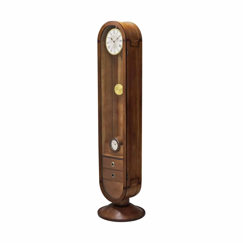 ساعت ایستاده کلاسیک با بدنه تمام چوب، طراحی منحصر‌به‌فرد، پاندول دکوراتیو، ساعت رومیزی داخلی و دو کشوی کاربردی. مجهز به موتورهای تایوانی با عملکرد دقیق و ۵ سال گارانتی رسمی شوبرت