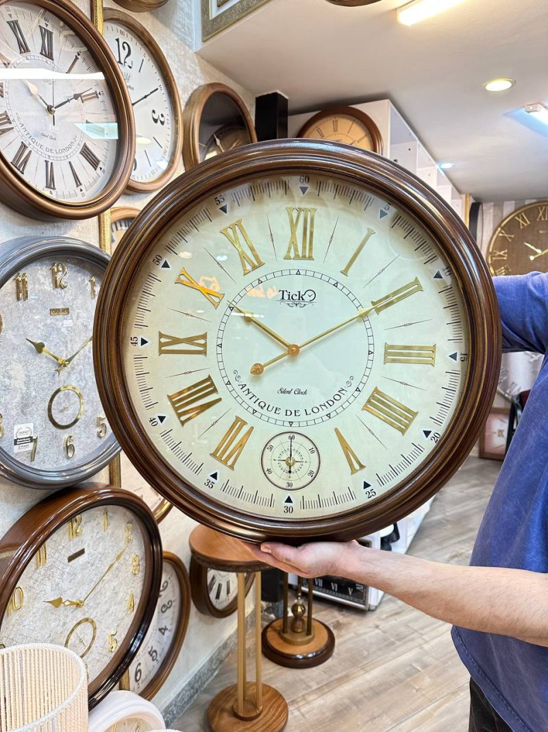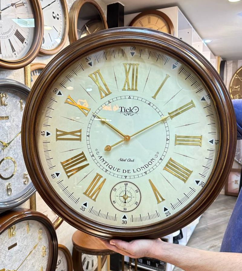 مدل 632 از برند TICK با قاب چوبی محکم و رنگ گرم قهوهای، حس اصالت و کیفیت را به فضای شما القا میکند. صفحه روشن با قطر بزرگ، اعداد رومی طلایی برجسته (جنس مولتی) را با وضوح و ظرافت در معرض دید قرار میدهد. عقربههای کلاسیک هماهنگ با رنگ قاب، در کنار عقربه ثانیهشمار مستقل که در صفحه کوچک پایین مرکز قرار گرفته، جلوهای خاص و بیصدا ایجاد کردهاند. استفاده از دو موتور تایوانی دقیق و کمصدا — یکی برای نمایش ساعت و دیگری برای حرکت ثانیهشمار — دوام و عملکرد روان این ساعت را تضمین میکند. قطر 58سانتیمتر آن، این محصول را به نقطهکانونی دیوارهای بزرگ و سالنهای رسمی بدل کرده است.