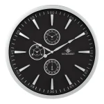 ساعت دیواری مدرن با بدنه فلزی سیلور و صفحه مشکی، قطر ۵۰ سانتی‌متر، مجهز به چهار موتور (یک موتور اصلی و سه موتور کوچک شامل ثانیه‌شمار و دو ساعت فرعی)، موتور تایوانی بی‌صدا با پنج سال گارانتی شوبرت | گالری خورشید شب