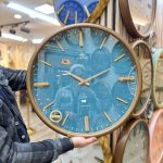 این ساعت برای دکورهای چوبی، روشن، مدرن و رنگی‑لوکس انتخابی عالی برای «گالری خورشید شب» است.