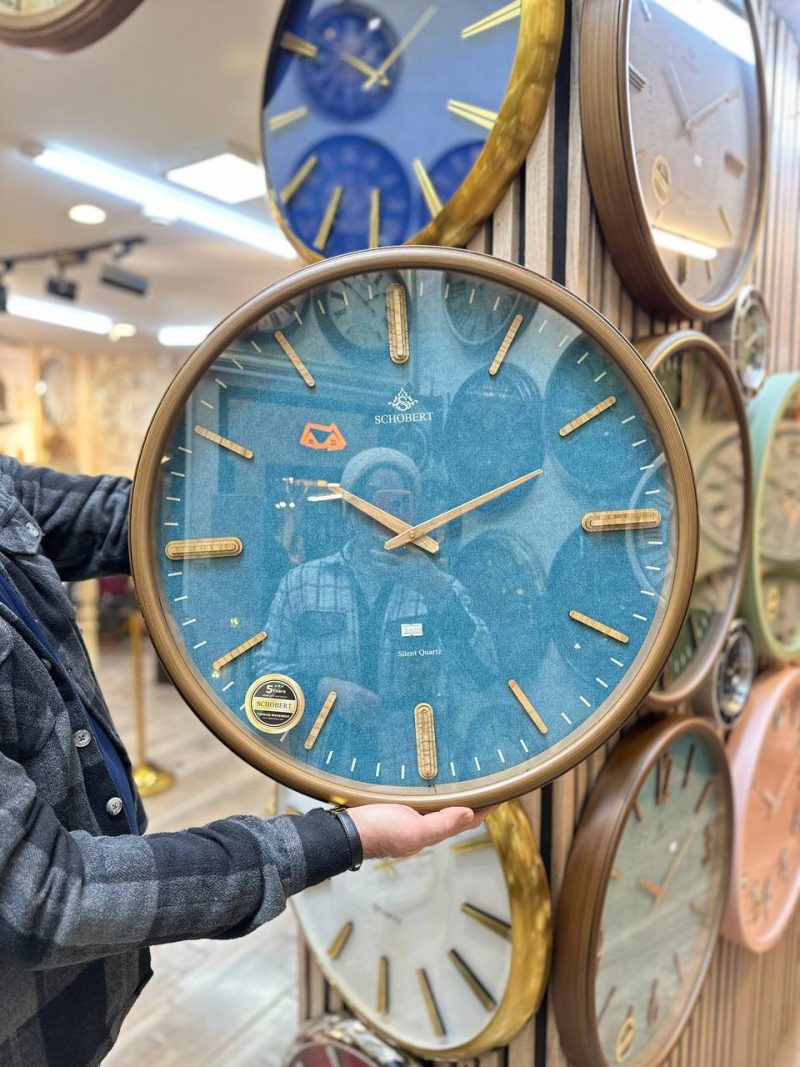 شوبرت 16003 با قاب چوبی MDF و صفحه‌ی آبی فیروزه‌ای بافت‌دار، طراحی آرام و چشم‌نوازی ایجاد می‌کند. نشانگرهای چوبی برجسته و عقربه‌های هم‌رنگ قاب، ساعت را یک‌دست و لوکس کرده‌اند. موتور تایوانی بی‌صدا و گارانتی ۵ ساله شوبرت کیفیت آن را تضمین می‌کند.