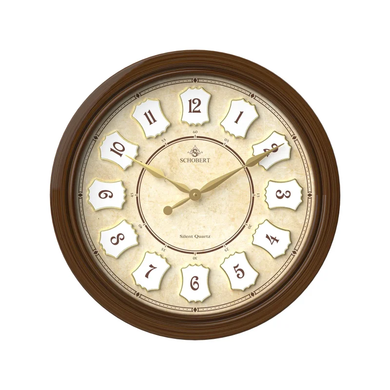ساعت دیواری شوبرت مدل 4015 با قاب چوبی و اعداد برجسته لاتین
