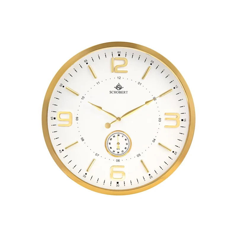 ساعت دیواری شوبرت مدل 5308GA با قاب فلزی طلایی و اعداد برجسته