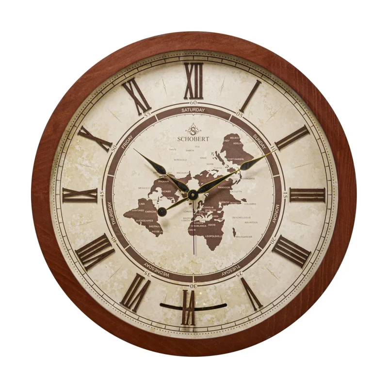 ساعت دیواری شوبرت مدل 6180 یکی از محصولات منحصربفرد گالری خورشید شب است که با بدنه چوبی قهوه‌ای رنگ و طراحی متفاوت خود، حس اصالت و شکوه را به فضای منزل یا محل کارتان هدیه می‌دهد. این ساعت دارای دو موتور مستقل است؛ یکی برای حرکت عقربه‌ها و دیگری برای پاندول کلاسیک که جلوه‌ای سنتی و دلنشین به ساعت می‌بخشد. روی صفحه‌ی ساعت نقش نقشه جهان با اعداد یونانی برجسته دیده می‌شود و وجود عقربه روزشمار باعث تمایز این مدل در میان نمونه‌های مشابه شده است. موتور تایوانی بی‌صدا و گارانتی ۵ ساله شرکت شوبرت، این ساعت را به انتخابی ماندگار و مطمئن تبدیل می‌کند. قطر 80 سانتیمتری این مدل، جلوه‌ای باشکوه برای فضاهای بزرگ ایجاد می‌کند.