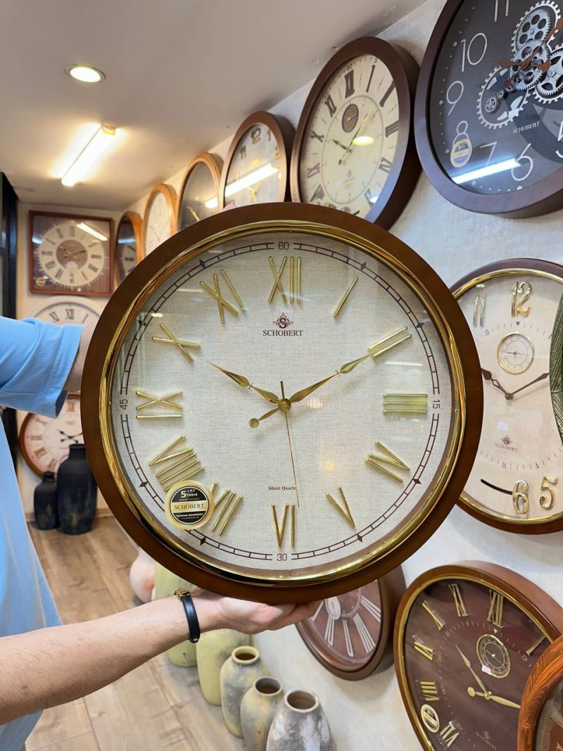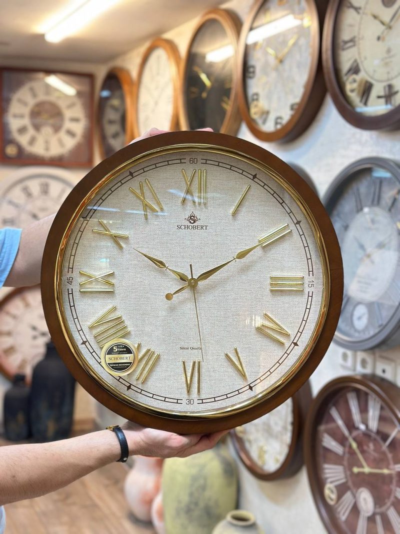 مدل 6320 از برند شوبرت، ترکیبی زیبا از اصالت چوب و درخشش فلز آبکاری طلایی فورتیک است. قاب چوبی با برش دقیق، در کنار فریم باریک فلزی طلایی، جلوه‌ای ظریف و لوکس ایجاد کرده است. صفحه کرم پتینه‌ای همراه با اعداد رومی برجسته طلایی، حس کلاسیک را با کیفیت مدرن ترکیب می‌کند. موتور دقیق ساخت تایوان، بی‌وقفه زمان را نمایش داده و 5 سال گارانتی رسمی شرکت شوبرت، اطمینان شما را از دوام و کیفیت تضمین می‌کند. قطر 50 سانت این ساعت، انتخابی مناسب برای سالن‌ها، اتاق نشیمن یا لابی‌های مجلل است.