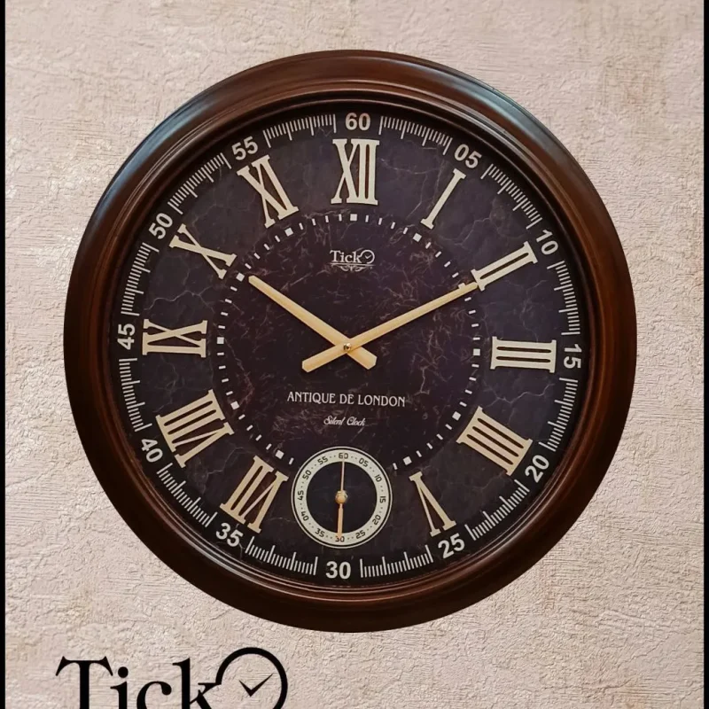 ساعت دیواری مدل 620 از برند Tick، با طراحی خاص و زمینه سنگی‌رنگ تیره، جلوه‌ای لوکس و متفاوت به دکوراسیون شما می‌بخشد.