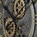 مدل 6149 از برند والتر نمونه‌ای خاص برای دوستداران طراحی‌های متمایز و مکانیکی است. بدنه فلزی آنتیک با پرداختی برنزی، در کنار اعداد رومی برجسته و چرخ‌دنده‌های طلایی متحرک در مرکز صفحه، جلوه‌ای پویا و صنعتی ایجاد می‌کند. دو موتور مجزا، دقت نمایش ساعت و حرکت نرم چرخ‌دنده‌ها را تضمین می‌کنند. موتور کوارتز باکیفیت این مدل، عمر طولانی و عملکرد بدون صدا را به همراه دارد و قطر ۵۹ سانتی‌متری آن، حضور چشم‌گیری بر دیوار ایجاد می‌کند.