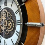مدل 7171 از برند والتر، تلفیقی چشمگیر از اصالت چوب و استحکام فلز را به نمایش می‌گذارد. قاب پهن چوبی در کنار جزئیات فلزی براق و طراحی صنعتی، جلوه‌ای قدرتمند و خاص ایجاد کرده است. صفحه بزرگ با اعداد رومی درشت، مرکزیت چرخ‌دنده‌های متحرک را برجسته می‌کند و حسی پویا و زنده به فضا می‌بخشد.