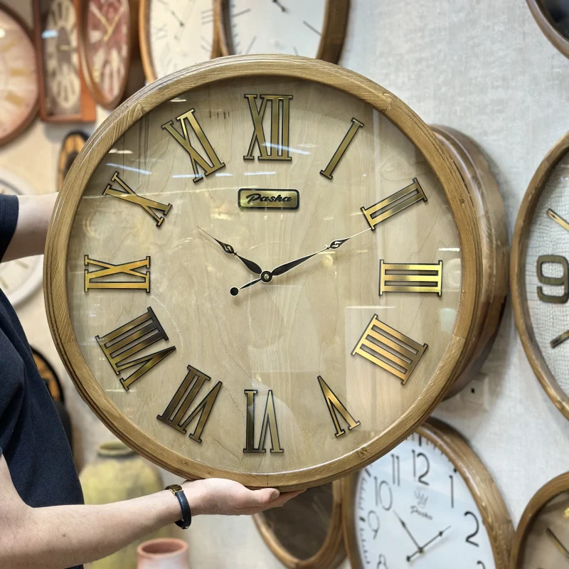 ساعت دیواری پاشا مدل pasha6510 ، ساعت دیواری با بدنه چوب طبیعی نراد روسی، موتور آرامگرد، طراحی مینیمال ساعت، ترکیب زیبا رنگ صفحه چوبی و بدنه قهوه ای، سایز 65.مناسب سبک مینیمال،مدرن و نئوکلاسیک