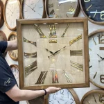 ساعت دیواری پاشا مدل pasha6562 ، ساعت دیواری با بدنه چوب طبیعی نراد روسی، موتور آرامگرد، طراحی مینیمال ساعت، ترکیب زیبا رنگ صفحه چوبی و بدنه قهوه ای، سایز 60×60مربع.مناسب سبک مینیمال،مدرن و نئوکلاسیک