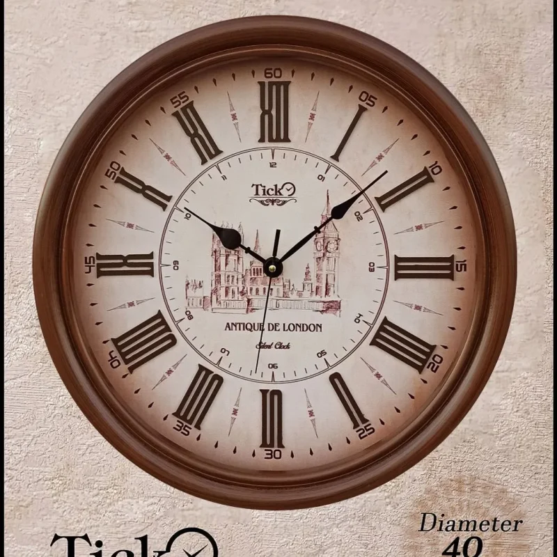 این مدل از ساعت دیواری برند Tick با کد 405Y و قطر 40 سانتیمتر، دارای قاب قهوهای از جنس MDF و صفحهای کرم با تصویر زیبای ساختمان لندن و اعداد یونانی قهوهای برجسته است. طراحی خاص آن، حس نوستالژیک و هنری را در فضای دکوراسیون ایجاد میکند. این ساعت با موتور تایوانی بیصدا عرضه میشود و دارای ۲ سال گارانتی معتبر میباشد. انتخابی عالی برای خانههای کلاسیک یا کافههای خاص.
