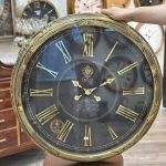 ساعت دیواری لاکچری با بدنه تمام چوب طبیعی، صفحه مشکی با اعداد رومی طلایی، موتور بی‌صدای تایوانی و طراحی کلاسیک؛ مناسب برای دکوراسیون‌های شیک و رسمی