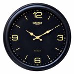ساعتی ساده و شیک با قاب پلاستیکی مشکی و اعداد طلایی درشت، مجهز به موتور تایوان Silent Quartz و گارانتی ۳ ساله.