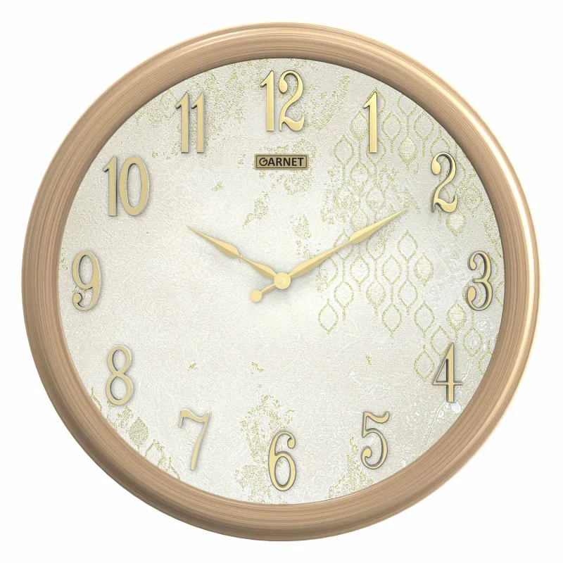 ساعت دیواری گارنت مدل 4031 با رنگ بدنه بژ و صفحه طرح کاغذ دیواری، از اعداد برجسته لاتین و موتور تایوانی بهره میبرد و با ۳ سال گارانتی شرکت شوبرت، انتخابی خاص برای هر دکوراسیون است.