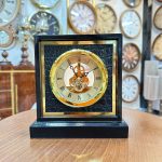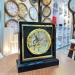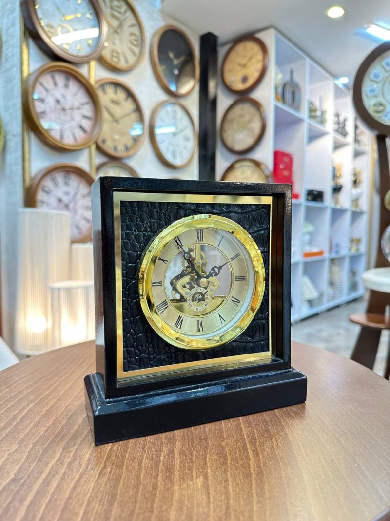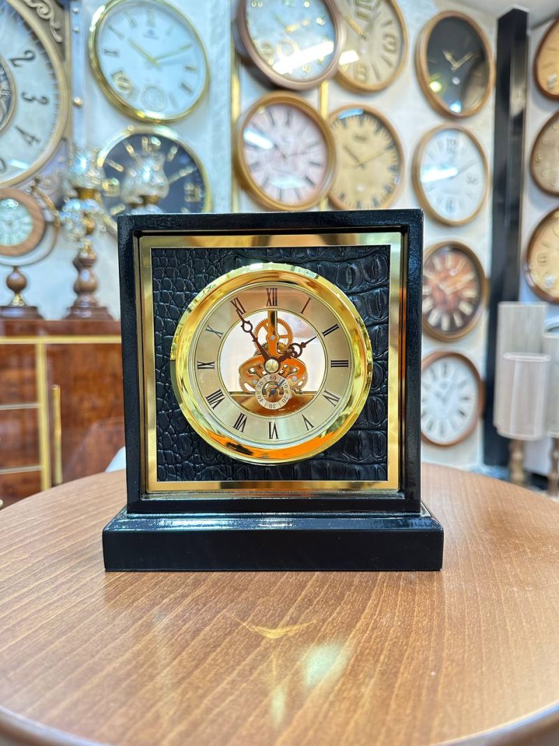 مدل 5624 از برند شوبرت، تلفیقی هنرمندانه از چوب و چرم کارشده را در قالبی کلاسیک–صنعتی ارائه میدهد. صفحه طلایی با اعداد رومی مشکی و جلوه چرخدندهای، حس اصالت و پویایی را در کنار زیبایی ماندگار ایجاد میکند. ابعاد جمعوجور و طراحی خاص این مدل، آن را گزینهای جذاب برای میزهای مدیریتی، کتابخانهها یا ویترینهای دکوراتیو میسازد.
