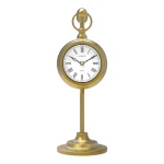 ساعت رومیزی لوکس با بدنه‌ی طلایی و صفحه سفید، مجهز به موتور تایوانی کم‌مصرف و ضمانت ۵ ساله شوبرت؛ ترکیبی از هنر کلاسیک و کیفیت مدرن برای دکور منزل یا محل کار شما.